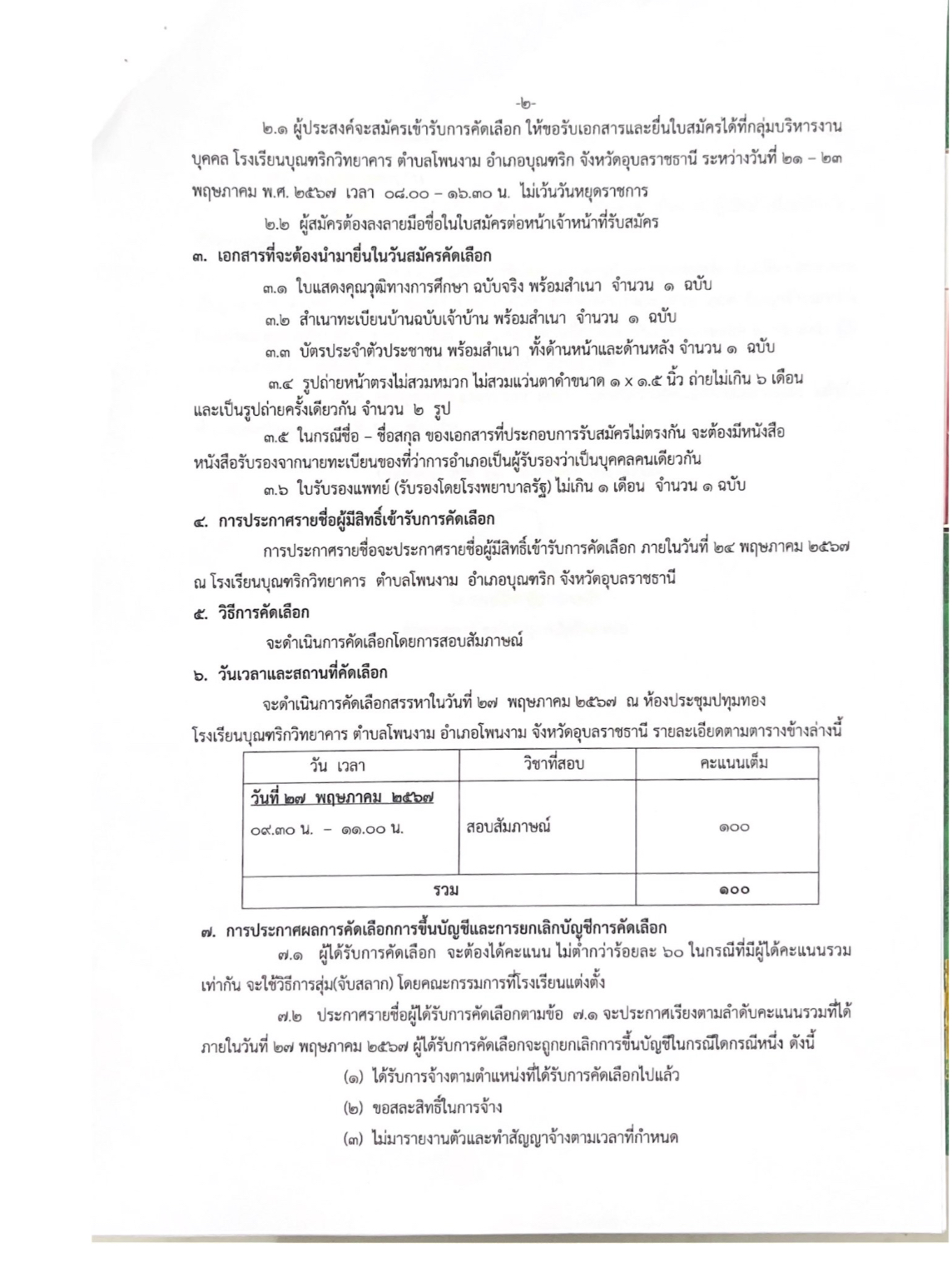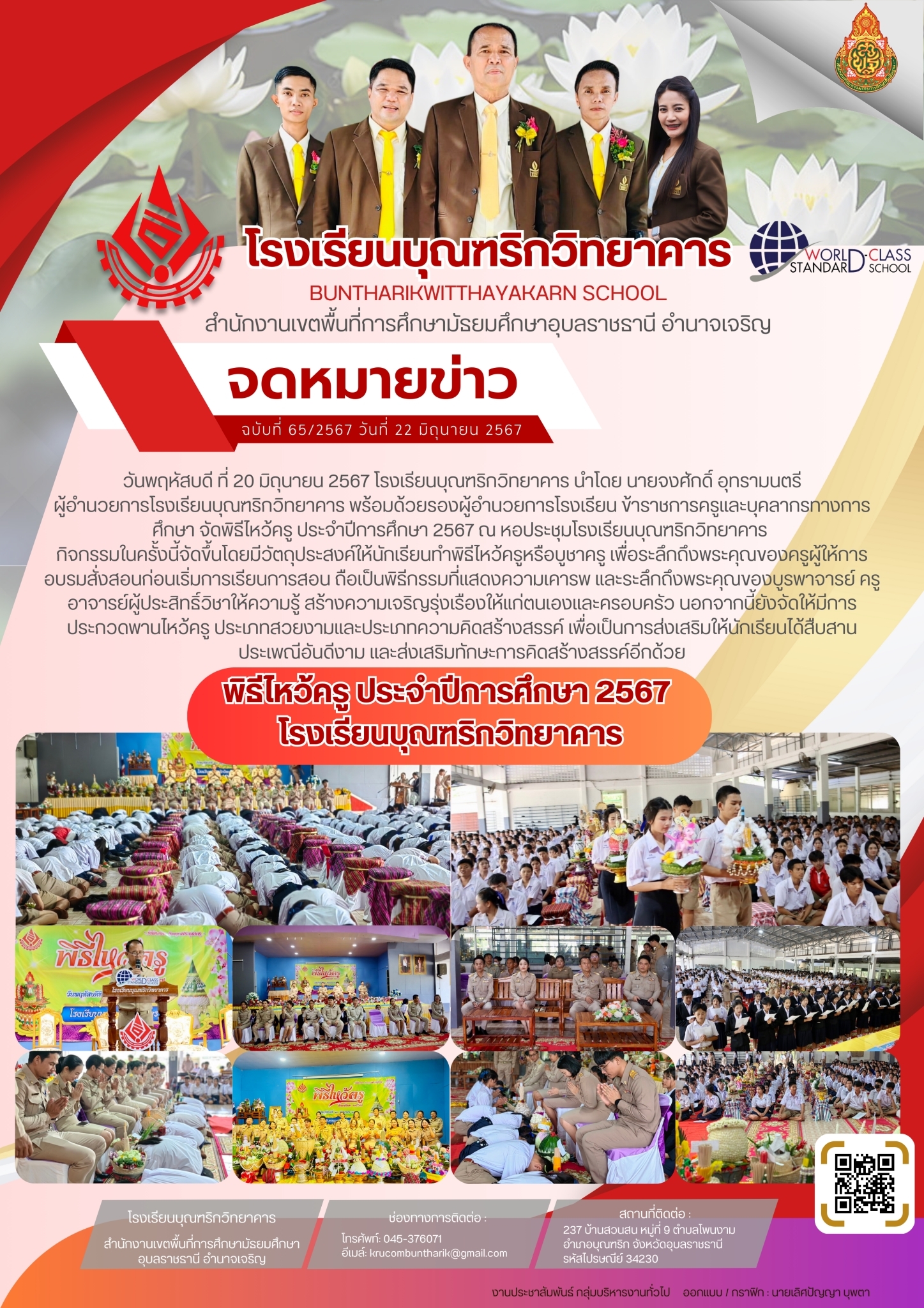 โรงเรียนบุณฑริกวิทยาคาร สังกัดสำนักงานเขตพื้นที่การศึกษามัธยมศึกษาอุบลราชธานี อำนาจเจริญ